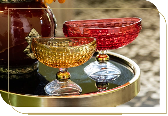 Complementi di arredo in vetro colorato, espressione di un gusto raffinato e di un profondo amore per l’arte.